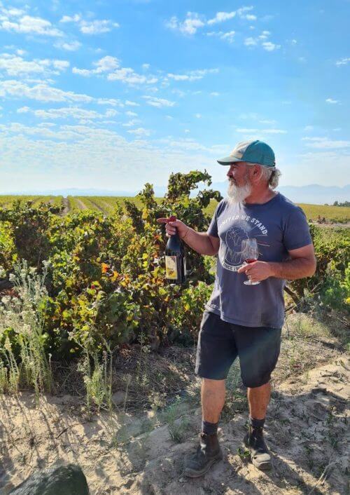 Das mag fantasievoll klingen, aber ich musste selbst lachen, als ich im alten Weinberg Ramnasgras Cinsault stand und auf Badenhorst wartete, den Mann mit Bart, der an einen Seher aus dem Alten Testament erinnert, um ein paar Tropfen seines 2012 Jahrgang…zu verteilen